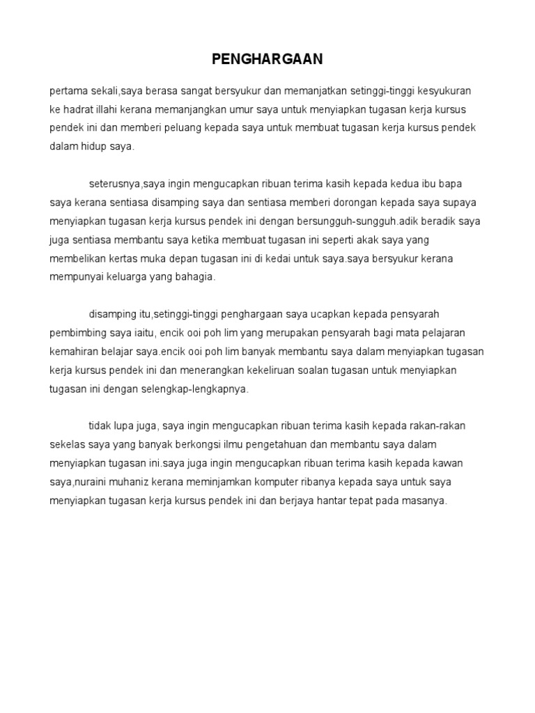 Contoh Folio 1 Penghargaan Syukur Alhamdulillah Kepada Allah S W T Kerana Dengan Berkat Dan Keizinan Dari Nya Maka Saya Telah Dapat Menyiapkan Course Hero